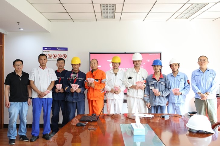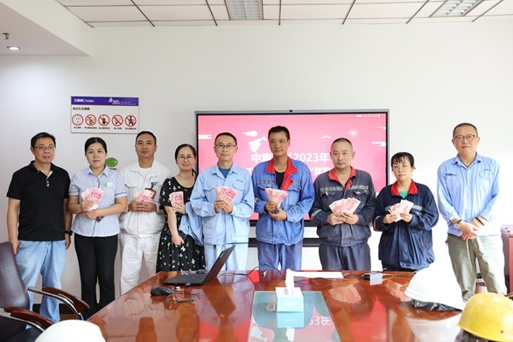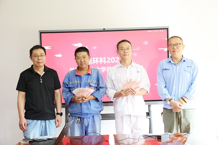 随后,工会主席包峰和工会副主席王永强经理为子女金榜题名的员工颁发了奖励金并合影留念。
