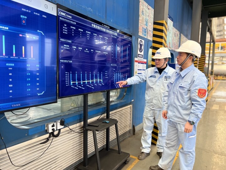 Bevictor伟德标罐车间内,生产执行系统(MES)的使用,让管理者更加精准把控生产进度节点;去年投入运营的喷粉车间,较以往用工减少了60%以上、生产效率提高了40%以上,工作人员通过中控室的数字大屏,可随时了解车间生产运营、产量进度以及能耗管控等情况……